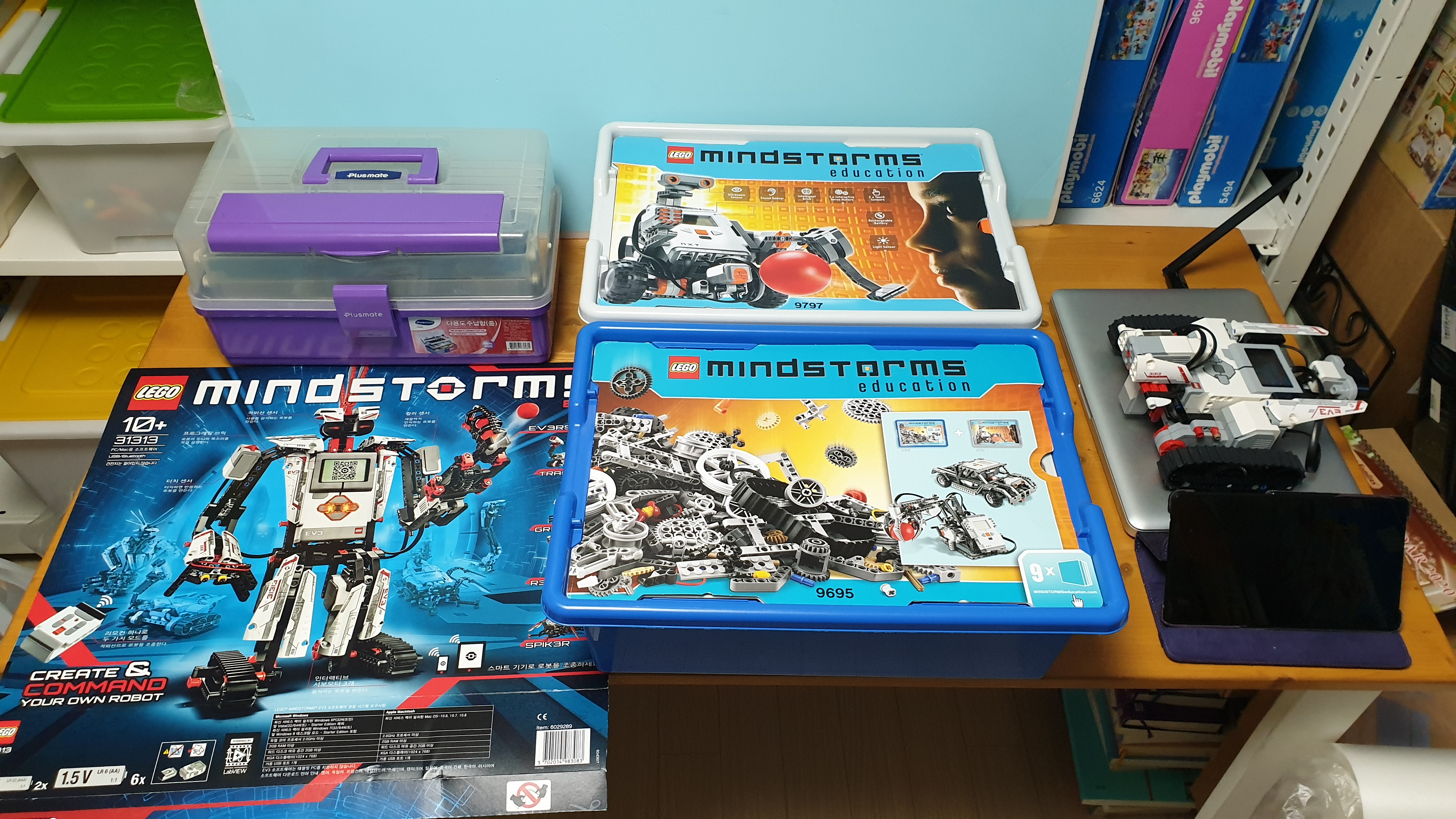 마인드스톰ev3 31313, NXT 9797, NXT 확장팩인 9695다. 31313은 새걸로 산거고 NXT는 중고로 싸게 샀던 거다. 아마 31313 위주로 하게 될 것 같고 31313에 없는 센서들을 NXT꺼를 사용하게 될 것 같다.(다행히 ev3에서 nxt 센서들이 호환된다.)